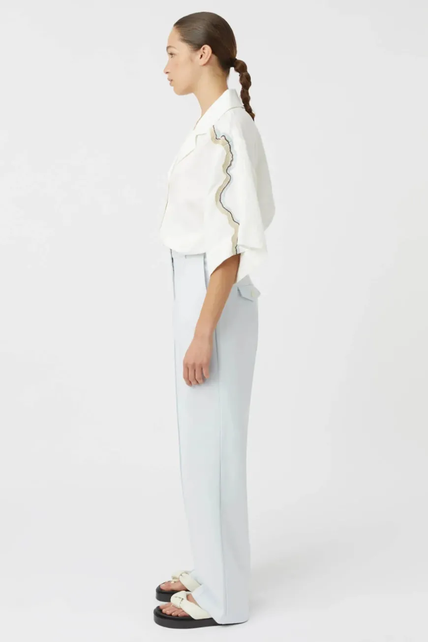 The Serene Shirt combines a relaxed fit with artistic flair, featuring embroidered artwork that adds a unique touch. Crafted from a woven linen blend, it ensures both comfort and breathability, perfect for warm-weather wear. The side splits enhance ease of movement, making this shirt a versatile addition to any casual wardrobe.