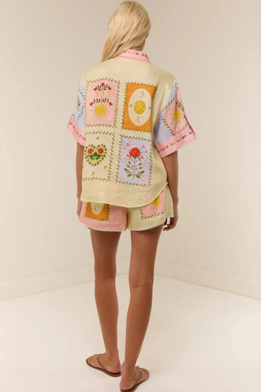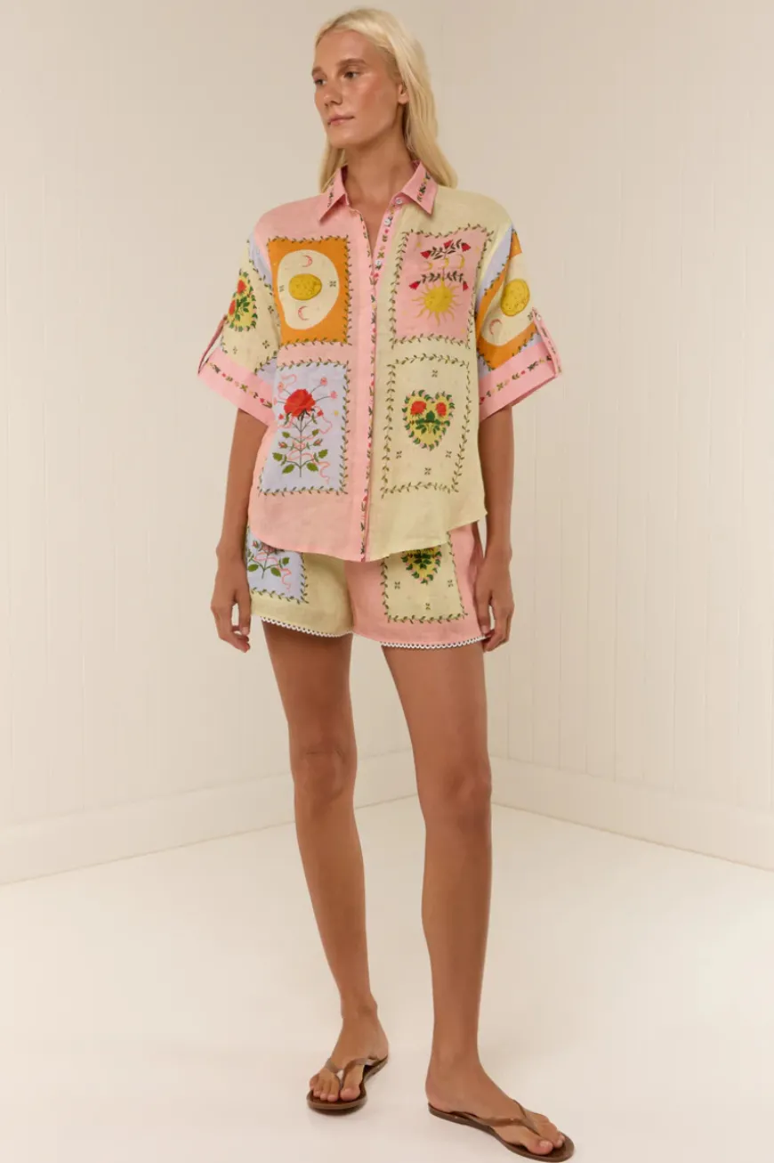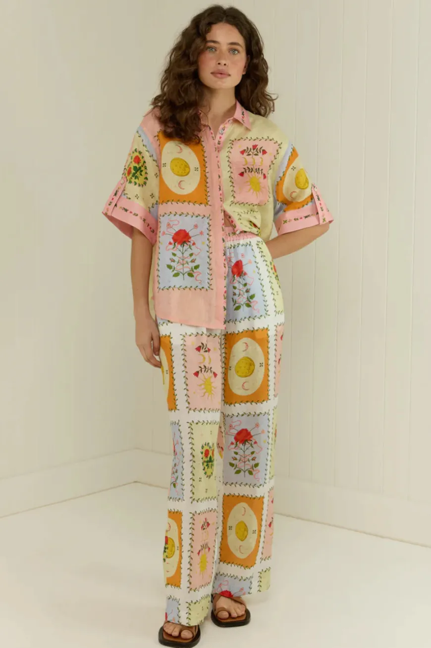 The Siesta Shirt in our exclusive Siesta Tile is crafted in a premium linen. The Siesta Shirt is designed to be a relaxed fit, featuring cuffed sleeves, concealed centre front buttons and a classic shirt collar. Pair back with our Siesta Pants or Porto Shorts for a matching set.