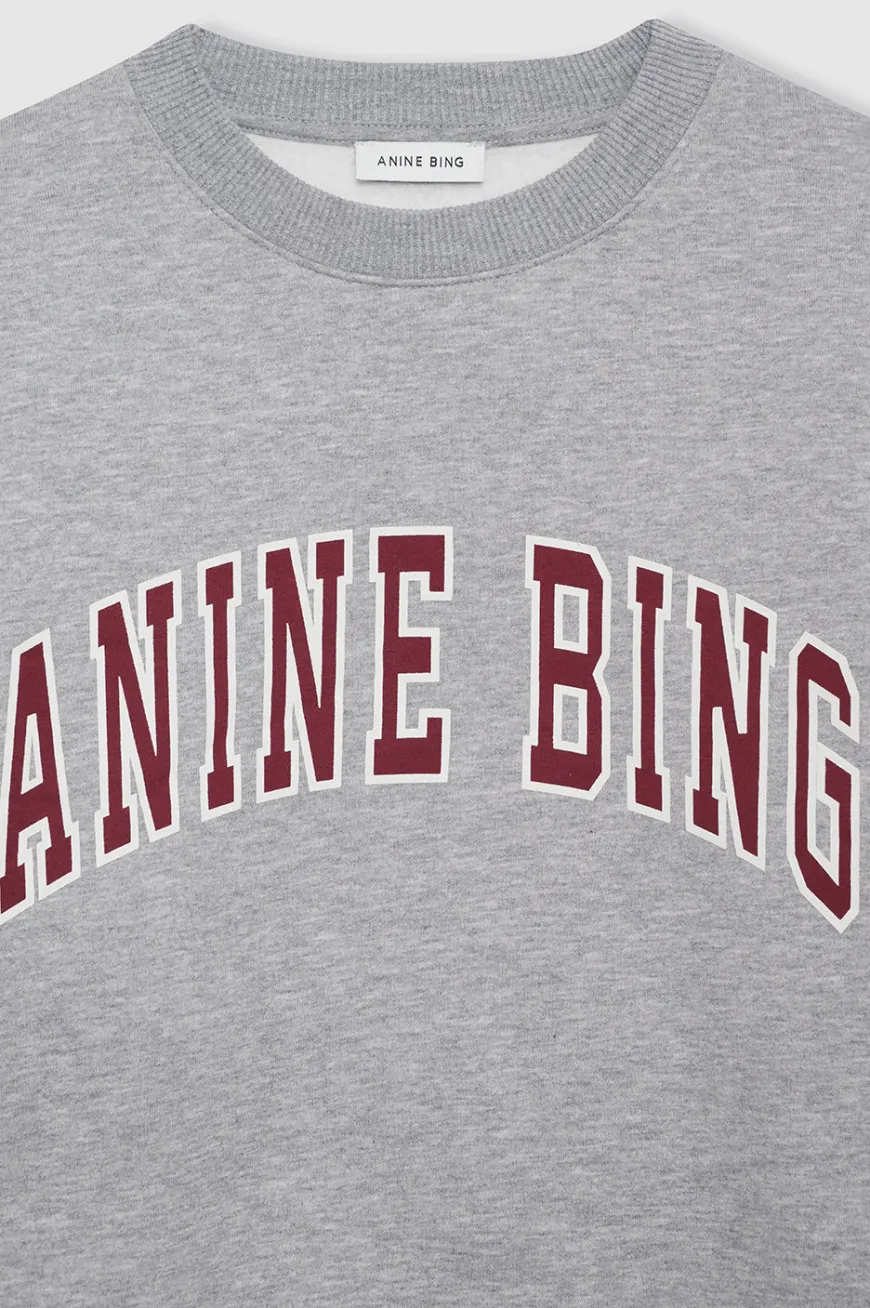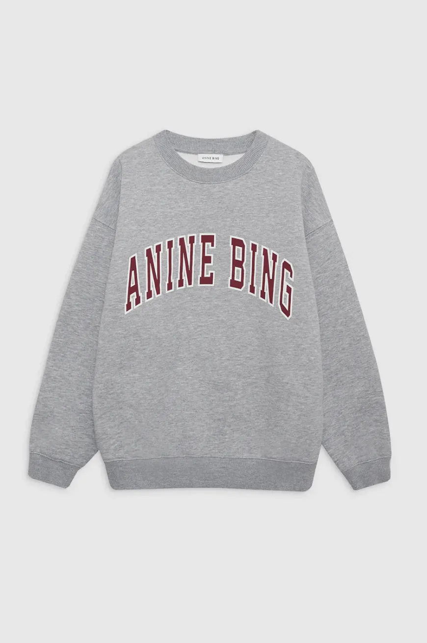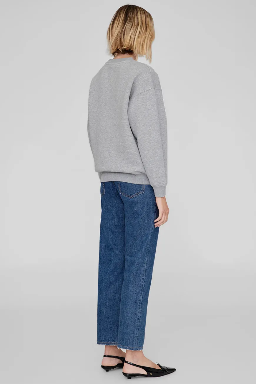 The Spencer Sweatshirt ANINE BING is made from midweight melange cotton fleece in heather grey. This everyday crewneck pullover features a custom graphic across the chest in contrast red.