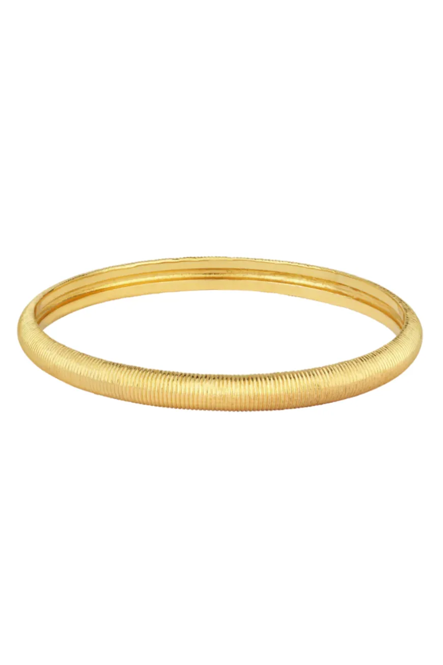 The Tasa bracelet pays homage to the glamour of these individuals in this time and place. With a rounded surface and textured front, this bracelet gently curves around the wrist.