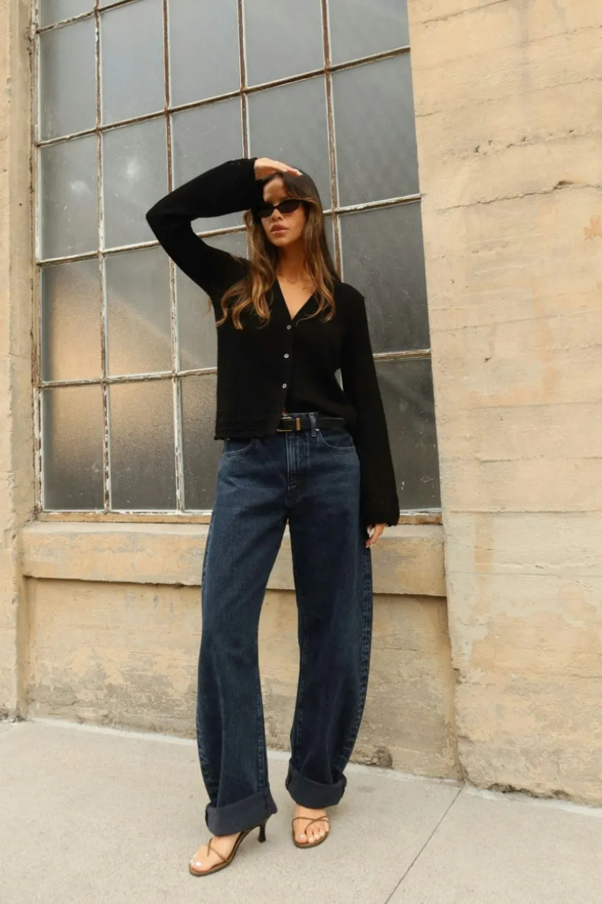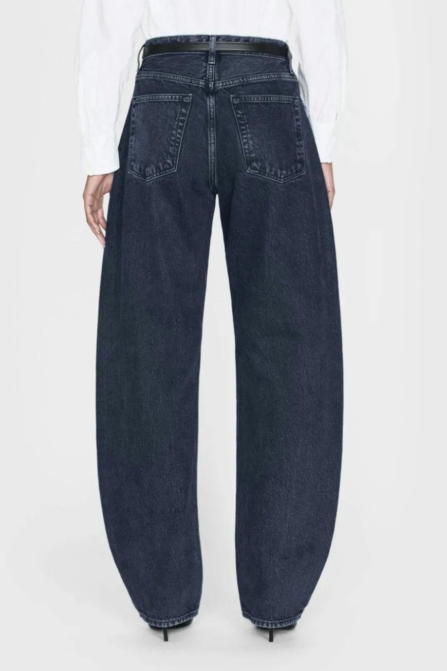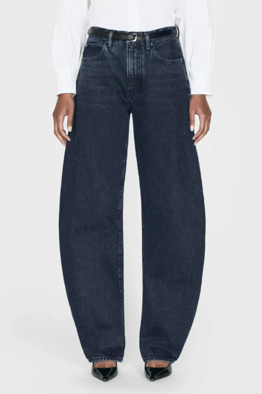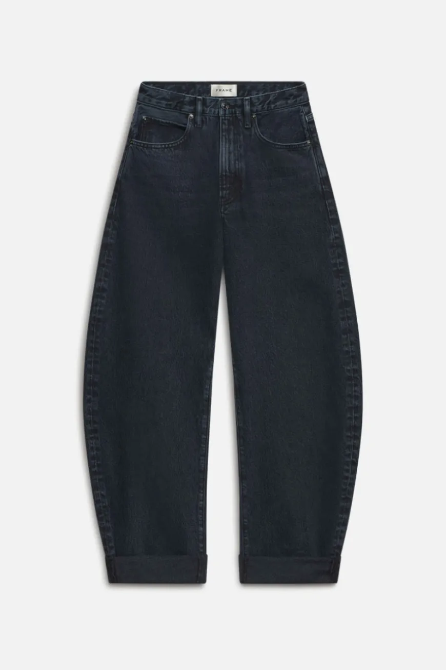 An exaggerated take on the trending barrel silhouette, this unique fit is your new closet necessity. With a flattering high rise, these jeans feature a curved outseam for a playful bubble effect. Designed to be worn cuffed and hit at the ankle, the 2.5″ twice-rolled cuff can be unrolled for a longer, more dramatic inseam.
