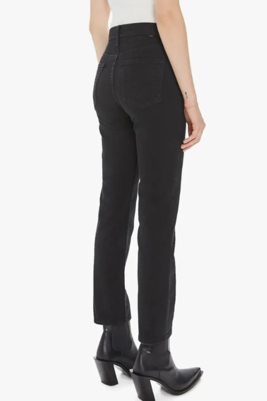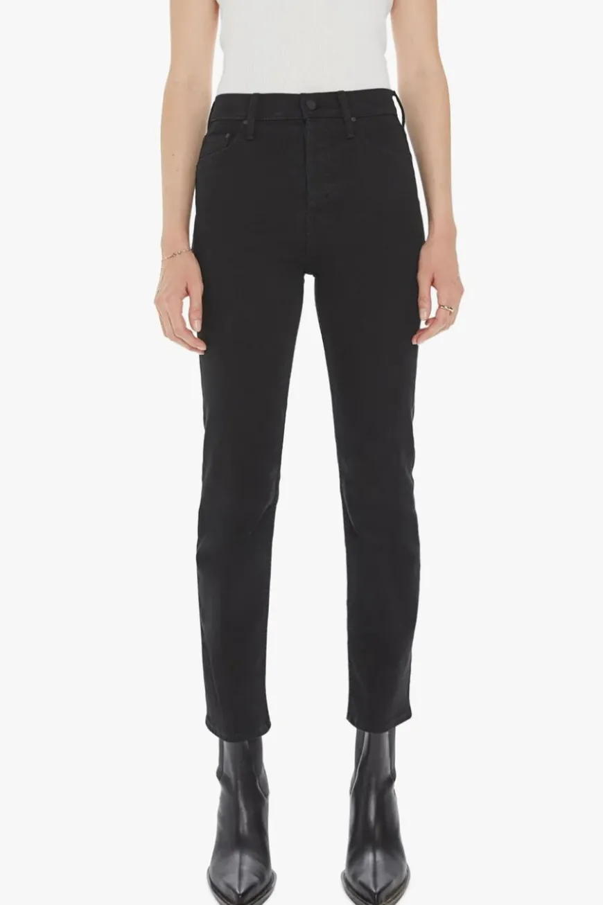 Dressed to impress. High-rise jeans with a straight leg, button fly, ankle-length inseam and a clean hem. Cut from a cotton blend with a touch of stretch, Lasting Impression is a dark black hue with tonal hardware.