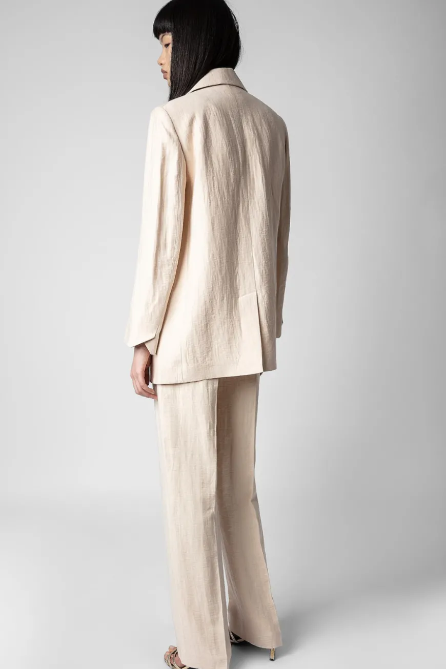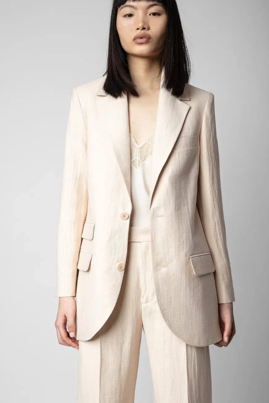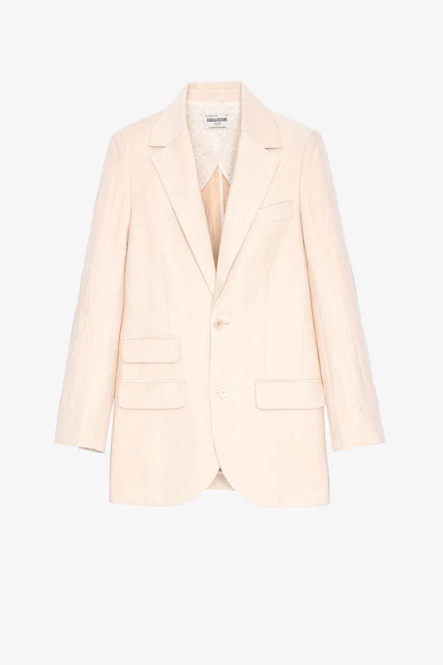 This linen jacket features a tailored collar, long sleeves and multiple pockets. Chic and defined, it can be worn over a blouse or a camisole, and paired with the matching shorts for a complete look.