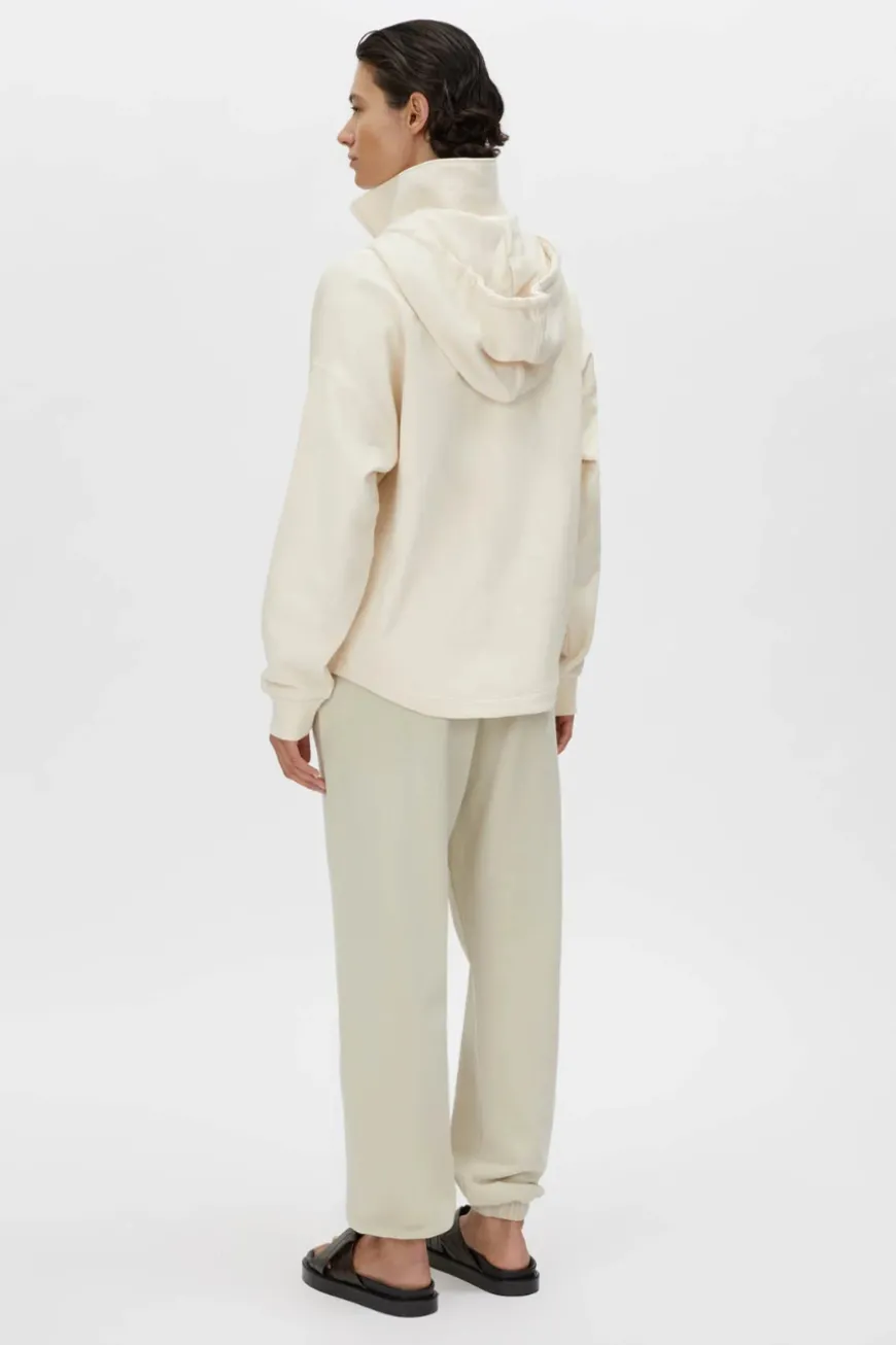 The Wade Zip Up Hoodie offers a timeless, versatile design with a high neck collar featuring drawcords and embroidered eyelets for a refined finish. The logo print on the left chest and straddle stitch detailing on the shoulder and armhole seams add subtle modern touches. Its kangaroo pocket, ribbed sleeve hem, and curved shirt hem shape make this hoodie a practical and elevated wardrobe essential.