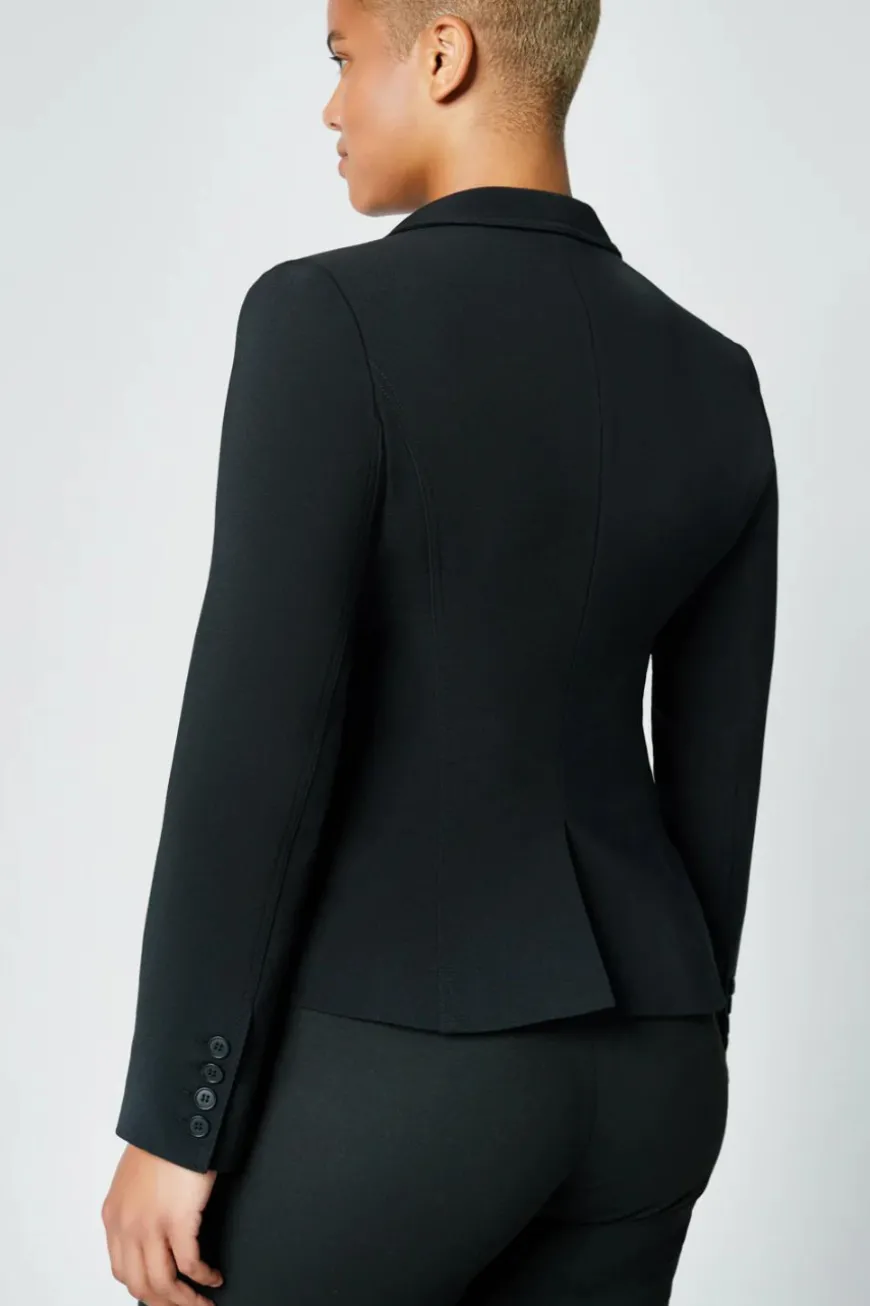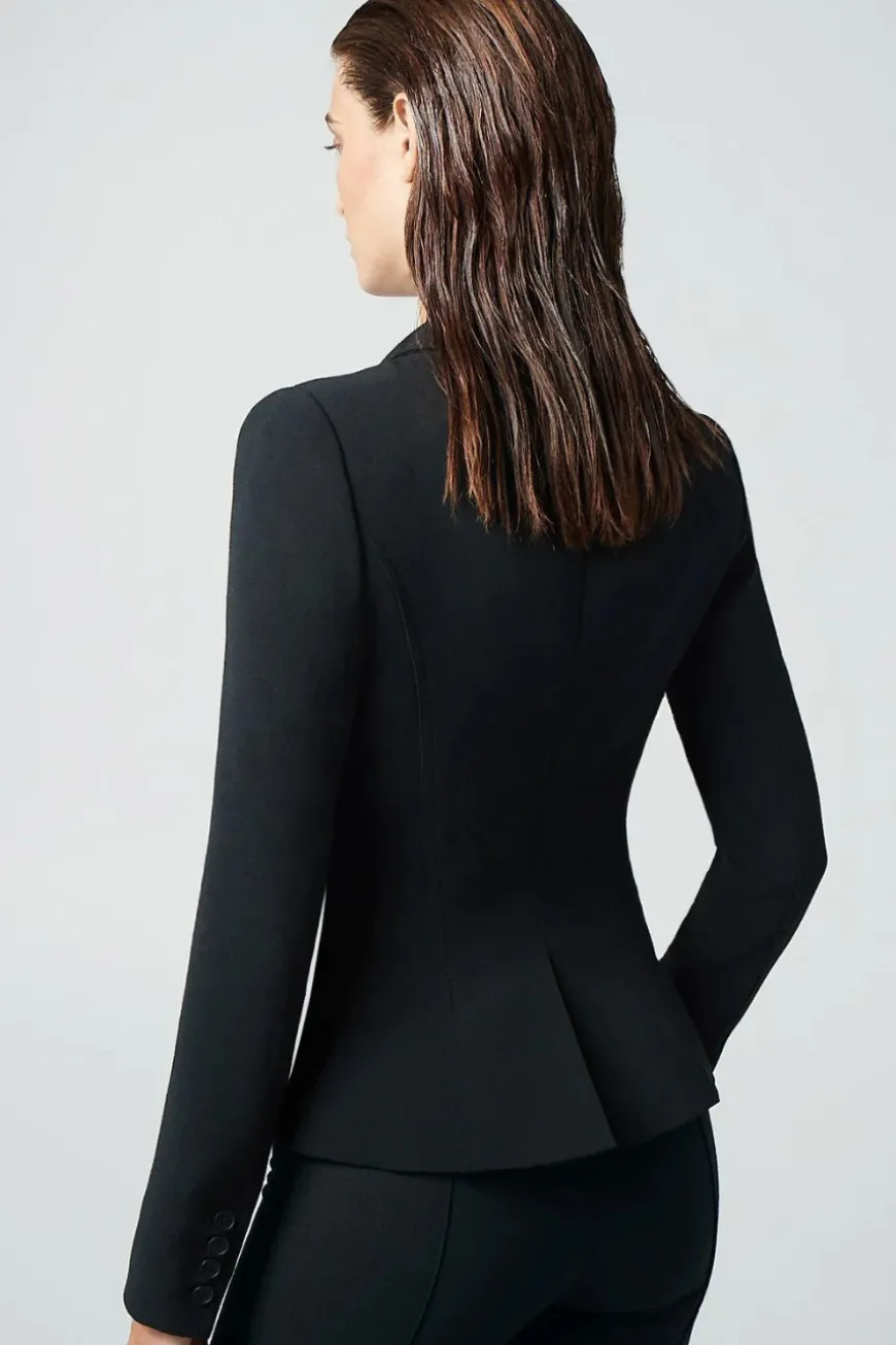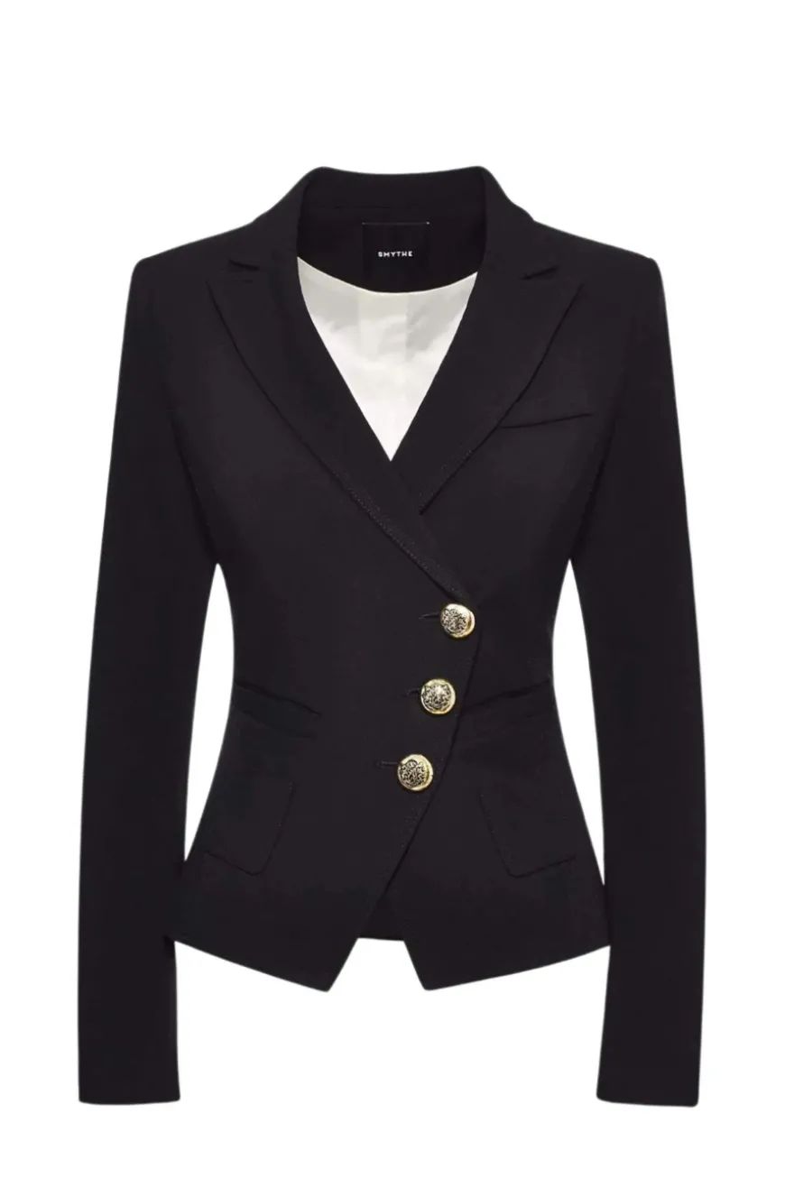 Decidedly tailored, this best-selling stretch silhouette has an asymmetrical double-breasted closure featuring oversized brass hardware.