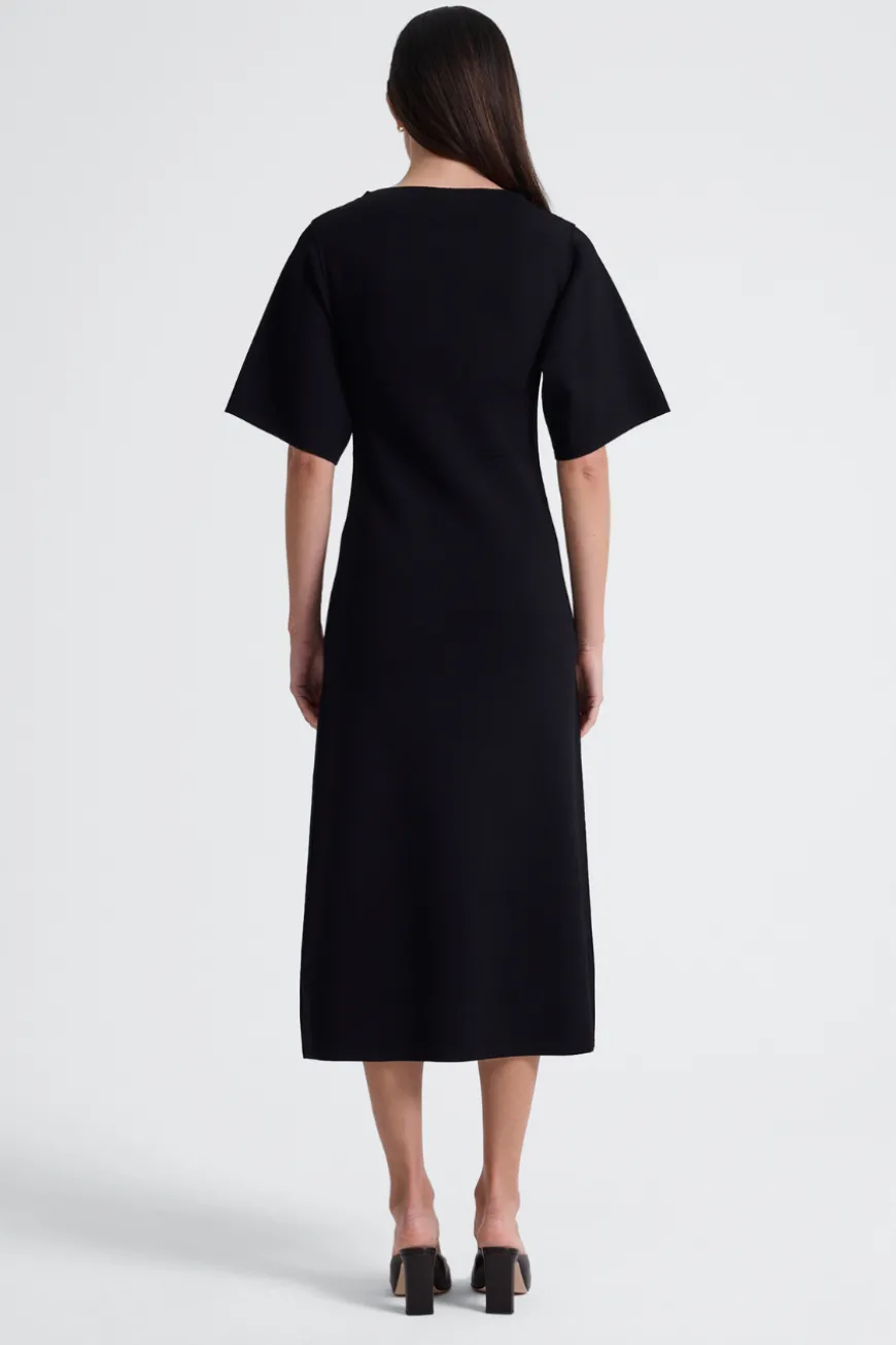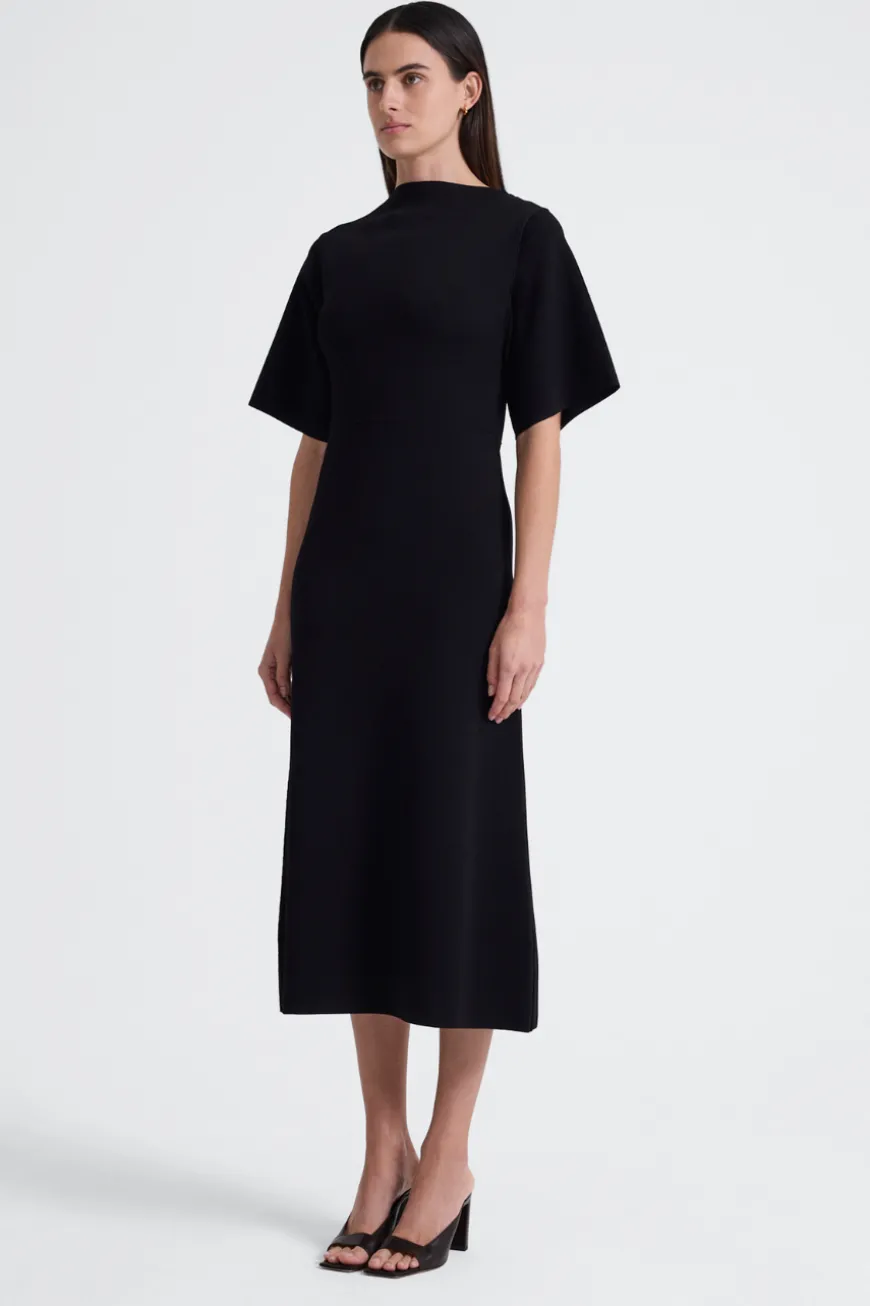 The perfect dress to take you from work to dinner. Oversized sleeves, with a semi-boat neck, our Write dress has a flattering, soft viscose stretch, with pin stitch waist detailing, and side seams. The knit dress is a trans-seasonal staple.